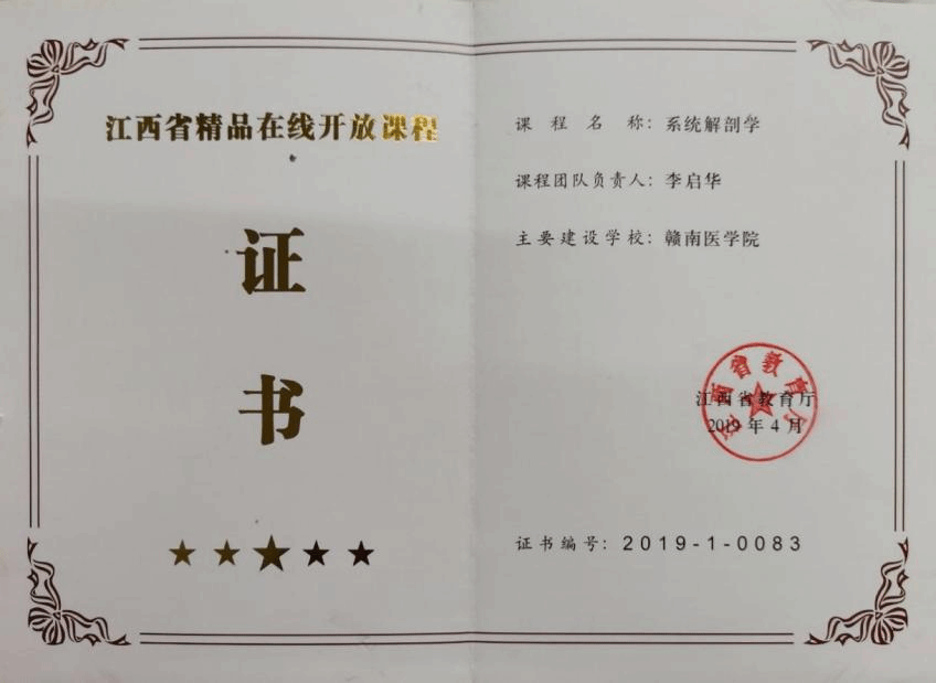 2019年《系统解剖学》课程被评为江西省精品在线开放课程