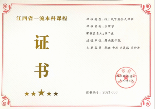 学科建设成果丰硕。生理教研室在退休教师孙庆伟教授带领下主编和参编教材达11部,数部为国家级规划教材。优质课程和一流教学团队享誉省内,《生理学》被评为江西省优质课程(2004年),生理学学科连续获评江西省“十一五”“十二五”重点学科;《生理学》《病理生理学》《医学机能技能学》三门课程均获批省级一流本科课程(2021—2022年),标志着学院教学质量与学科建设迈上新台阶。