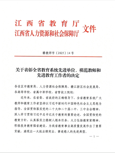 9月4日,在江西省教育厅、省人力资源和社会保障厅表彰中,赣南医科大学基础医学院获评“2025年全省教育系统先进单位”。