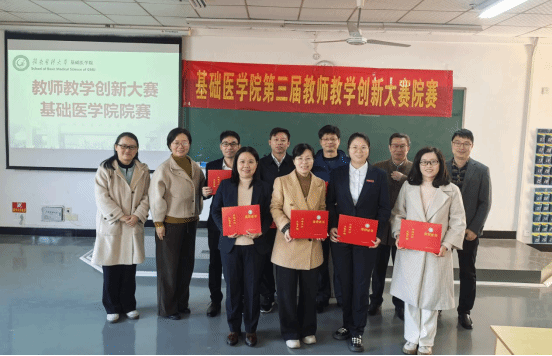 为深入践行党的二十届四中全会精神,全面激发教师教学创新活力,推动课堂教育教学改革提质增效,12月19日,基础医学院在蓉江校区举办校第三届教师教学创新大赛院赛。本次比赛邀请了原教务处处长严宜明、护理学院副院长孟利敏、医学技术学院副院长甘滔担任评委。全院教师齐聚现场观摩交流。