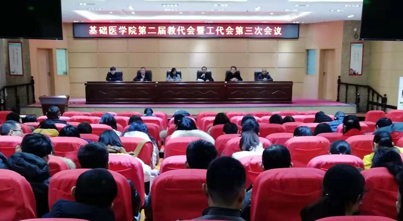 2月23日上午,基础医学院举行第二届教代会暨工代会第三次会议,该院全体教职工参会。