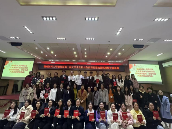 2024年12月7日,由教务处和基础医学院共同主办,生物化学与分子生物学教研室、医学免疫教研室、生化免疫研学会共同承办的赣南医科大学“德技杯”第一届生化与免疫课程思政微课视频大赛决赛在黄金校区完美落幕。此次大赛旨在深入挖掘生化与免疫课程中的思政元素,提升课程思政教学质量,促进专业教育与思政教育的有机融合。
