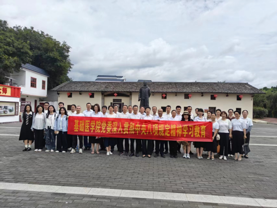 6月27日上午,基础医学院组织领导班子成员、师生党员代表前往郭大力故居,开展学习革命先辈清廉风范、推进作风建设主题的参观学习活动,切实增强教师的廉洁从教意识,推动学院深入贯彻中央八项规定精神学习教育走深走实