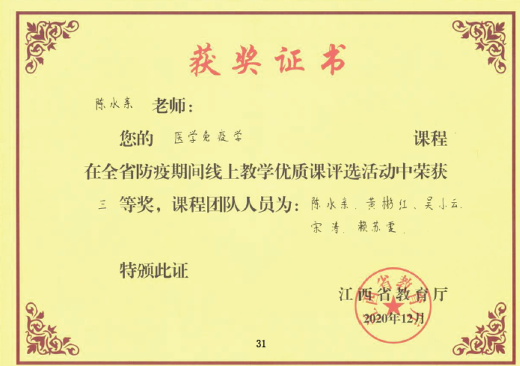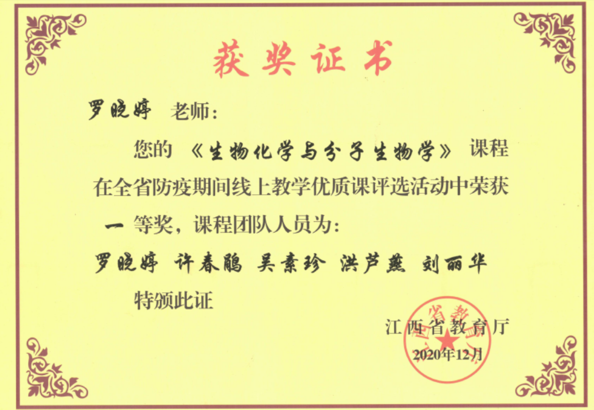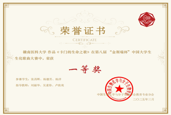 学科竞赛体系化:持续优化“德技杯”学科竞赛体系,打造了生物化学歌曲大赛、生物化学与分子生物学实验技能与创新设计大赛赛、医学遗传学科普大赛等多种经典完整,建立了“党员导师+科研反哺”的常态化运行机制,形成了以竞赛激发学习热情、提升教学能力、推动学科建设的良性互动格局。近年来累计指导学生获国家级、省级奖项20余项。