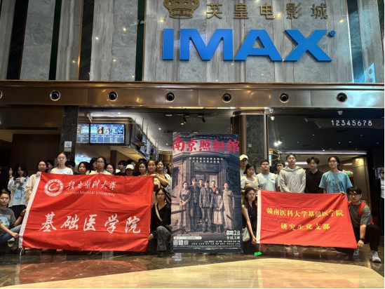 9月7日,为纪念中国人民抗日战争暨世界反法西斯战争胜利80周年,基础医学院组织在校学生前往英皇国际影城开展了“弘扬抗战精神,凝聚团结力量”的主题观影活动。观看抗战题材电影《南京照相馆》,学院188名本科生及研究生参加活动。