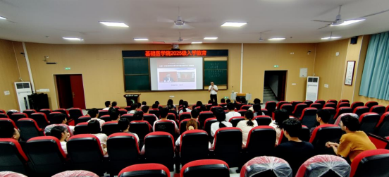 为深入学习贯彻习近平新时代中国特色社会主义思想和党的二十届二中、三中全会精神,教育引导入党申请人提高思想觉悟、端正入党动机,基础医学院分党校于9月23日18:30在龙南校区开展了2025级新生入党申请人“开课第一讲”,本次讲座由基础医学院党委副书记刘志春主讲。
