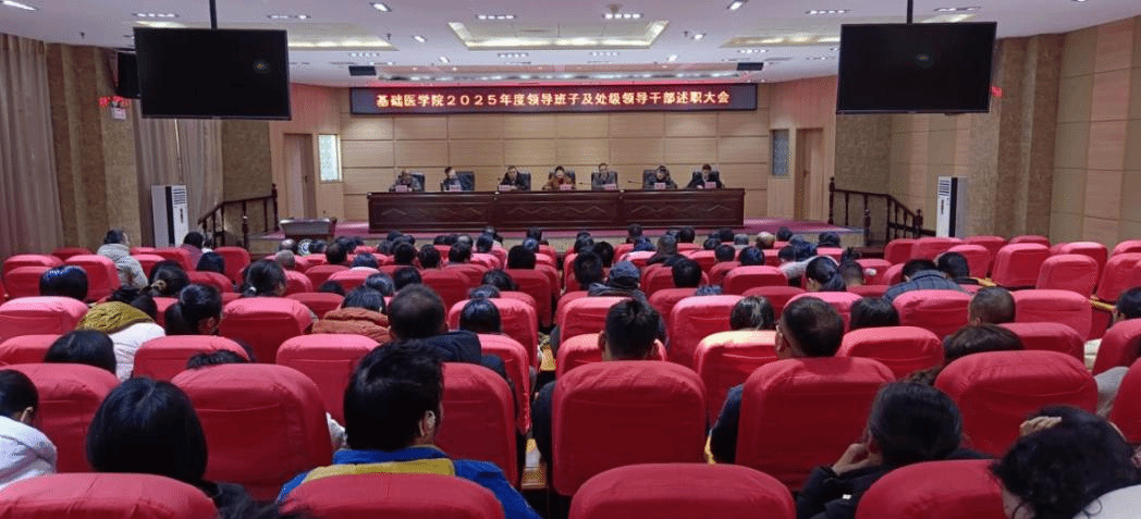 1月7日上午,基础医学院在蓉江校区开2025年度领导班子及处级干部述职大会。学校测评组莅临现场指导工作,学院全体教职工参加会议,共同回顾年度工作成效,谋划未来发展方向。
